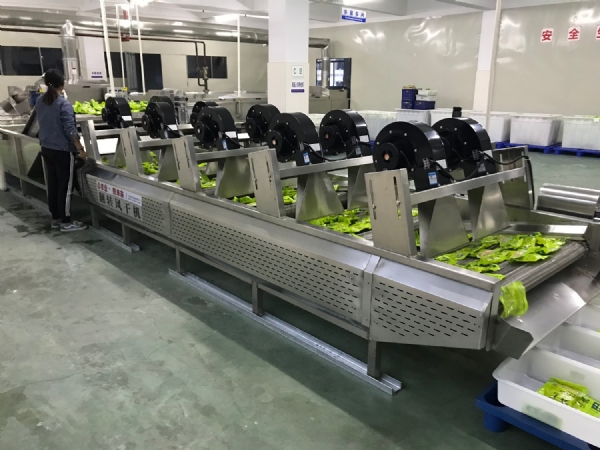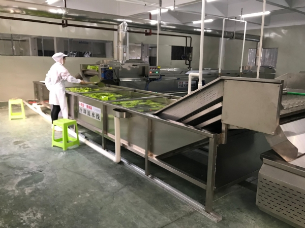 包裝好的筍進入巴氏殺菌流水線后進入冷卻流水線,再進行翻轉風干機攤晾吹干剩余水分