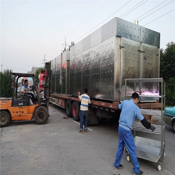 工作原理:物料從入料口進入,通過封閉式高熱量強風量循環風逐一吹動物料,使所進物料干濕度進度一樣從出料口運出。