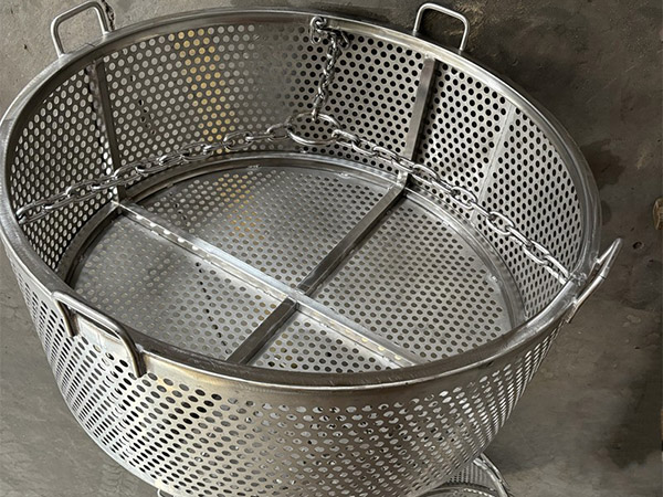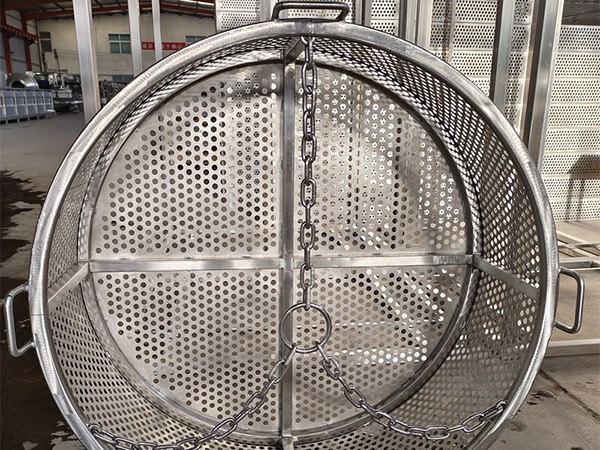 1、山東諸城市光銳機械有限公司供應立式殺 菌鍋圓形不銹鋼殺 菌筐,材質為304、316不銹鋼,尺寸可定,,不銹鋼沖孔大小可調。耐腐抗銹,簡潔美觀,清潔衛生,符合食品衛生標準。 板材數控沖孔,高密度布孔:更扎實、光滑,耐酸堿。筐外加裝箍圈,不變形,不漲裂,無 毒害,耐高溫(132度以上),通氣孔分布均勻,便于熱交換。這種筐上面可加吊鉤,直接吊出,使用方便!廣大食品廠家也可根據自己產品特點直接訂購適合自己產品尺寸的殺 菌筐。材質有鋁制、不銹鋼。沖孔、0.8不銹鋼材質可以殺豆腐干、海鮮等小包裝產品,1、1.2、或1.5材質的可以殺玉米等稍大一點的產品。板材厚度根據客戶要求用料,一般的是0.8毫米的和1.0毫米的,也可根據客戶實地要求訂做。歡迎廣大食品廠家來人、來電垂詢!